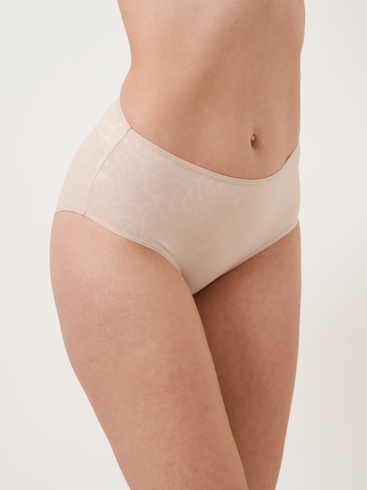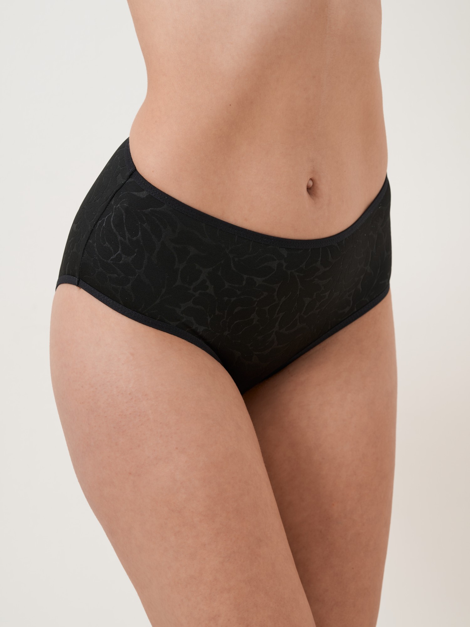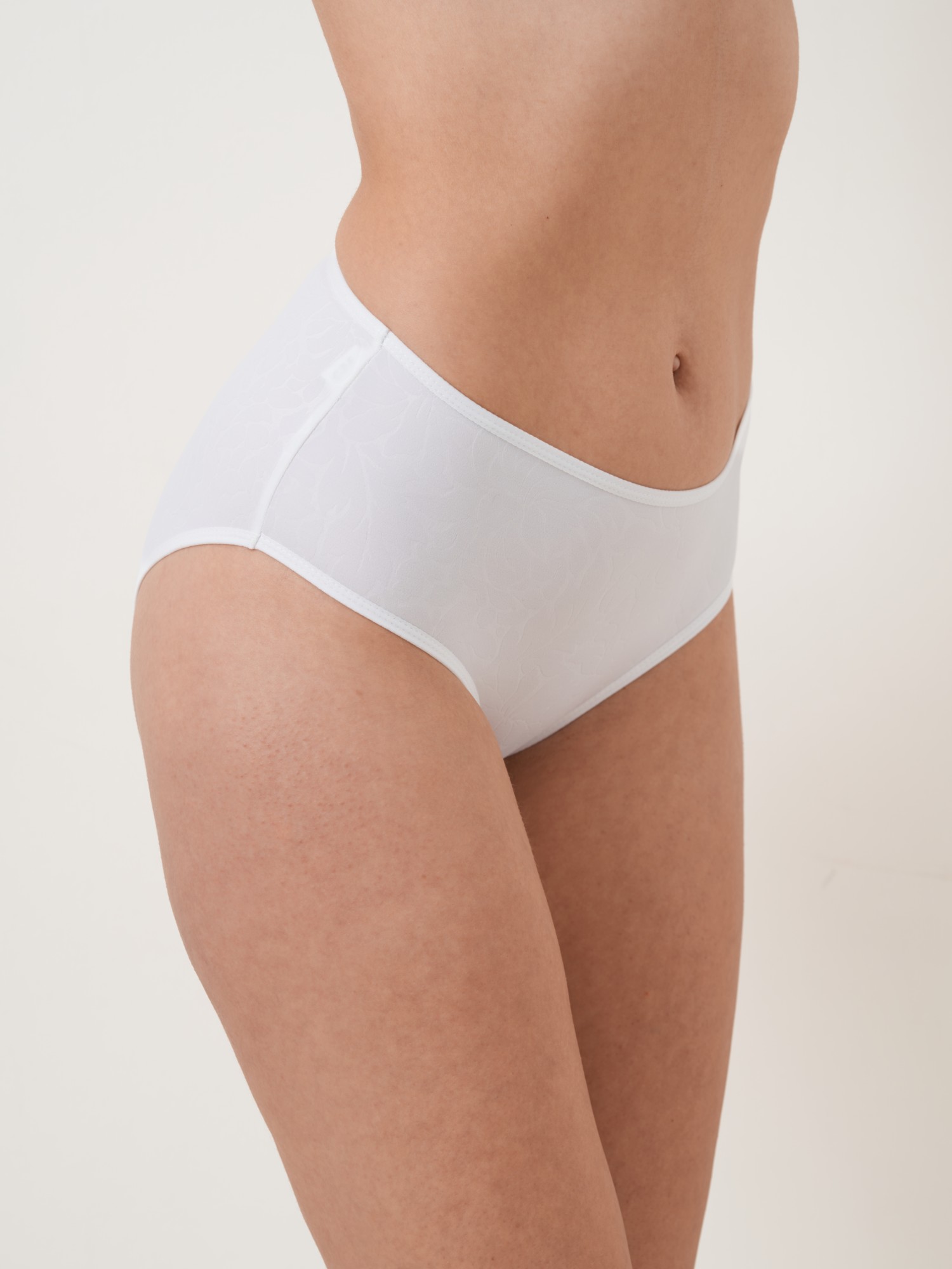 Klasické kalhotky z jemného mikrovlákna s elegantním žakárovým vzorem. Působí hladce a decentně, jsou velmi příjemné na těle a perfektně se přizpůsobí postavě. Díky vyššímu střihu poskytují pohodlí i jemné zeštíhlení v oblasti boků a bříška. Vhodné pro každodenní nošení i pod přiléhavé oblečení – nezanechávají viditelné přechody. * Materiál: jemné mikrovlákno s žakárovým vzorem * Přední i zadní část: hladká, bez krajky * Střih: vyšší klasický * Hebké, prodyšné, dobře drží tvar * Ideální pro pohodlné nošení po celý den