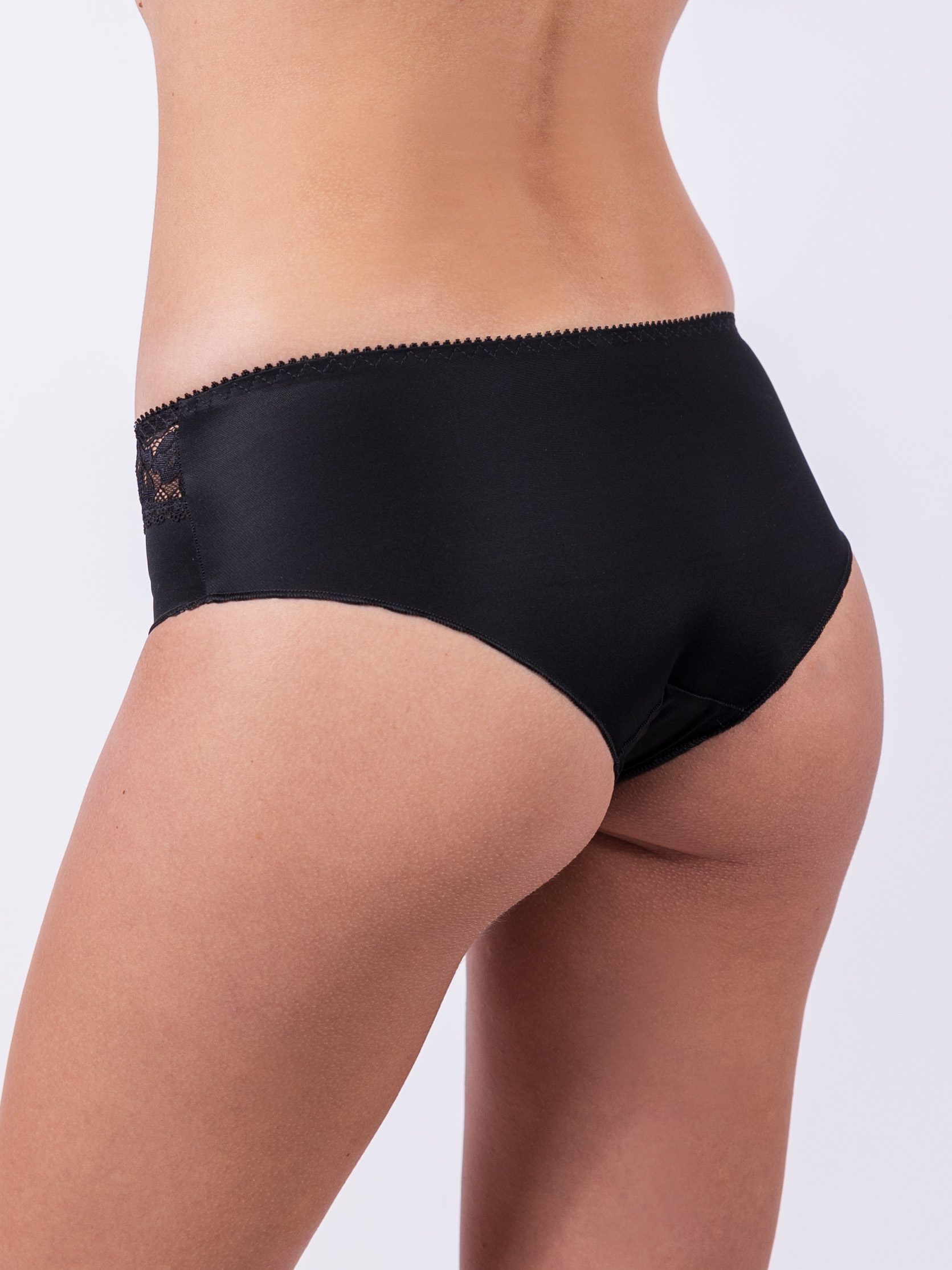 Kalhotky nižšího střihu se širšími boky krásně zapadnou spolu s podprsenkou Diana. Jemný materiál působí pohodlně a zároveň elegantně.