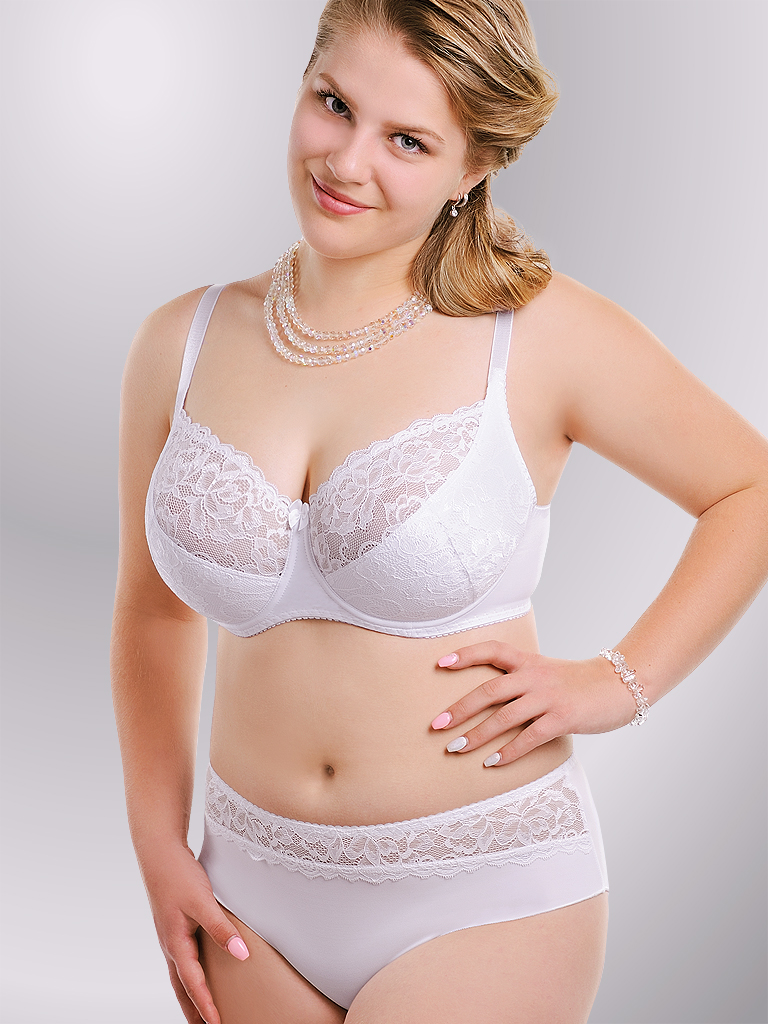 Luxusní krajková polovyztužená podprsenka s kosticí, která zvýrazní krásu vašeho dekoltu. Molitan ve spodní části košíčku pozvene a udrží i velká poprsí. Záda jsou ušita z vysoce kvalitního materiálu, který je dost pevný, aby váhu poprsí rozložil po celém obvodu. Vyráběna v atraktivních velikostech košíčků až do H. Krajka dodá jemnost a eleganci.