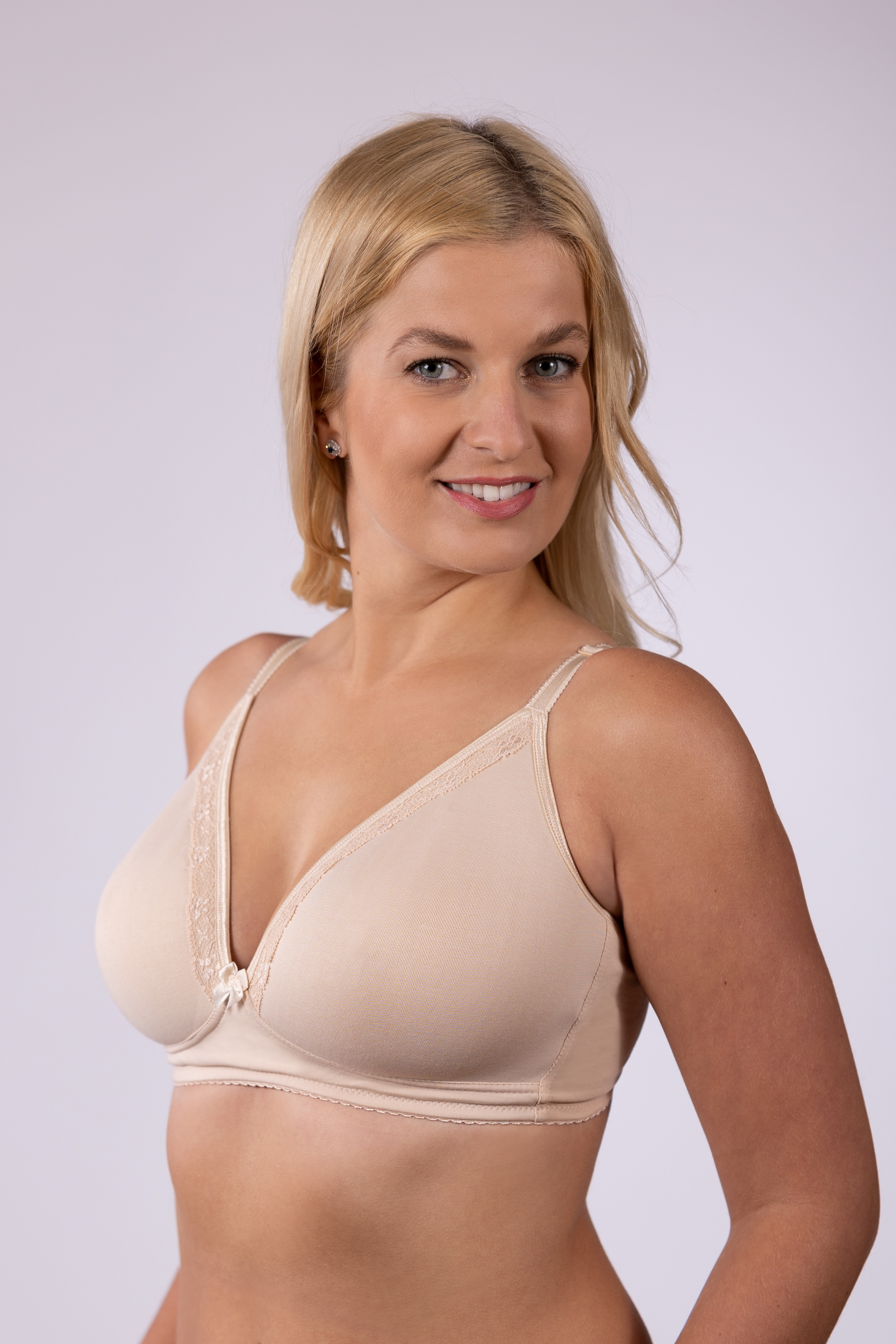 Elegantní podpsenka s lisovanými košičky. Úzká všitá krajka na horní části podprsenky lehce zvýrazní dámské poprsí.