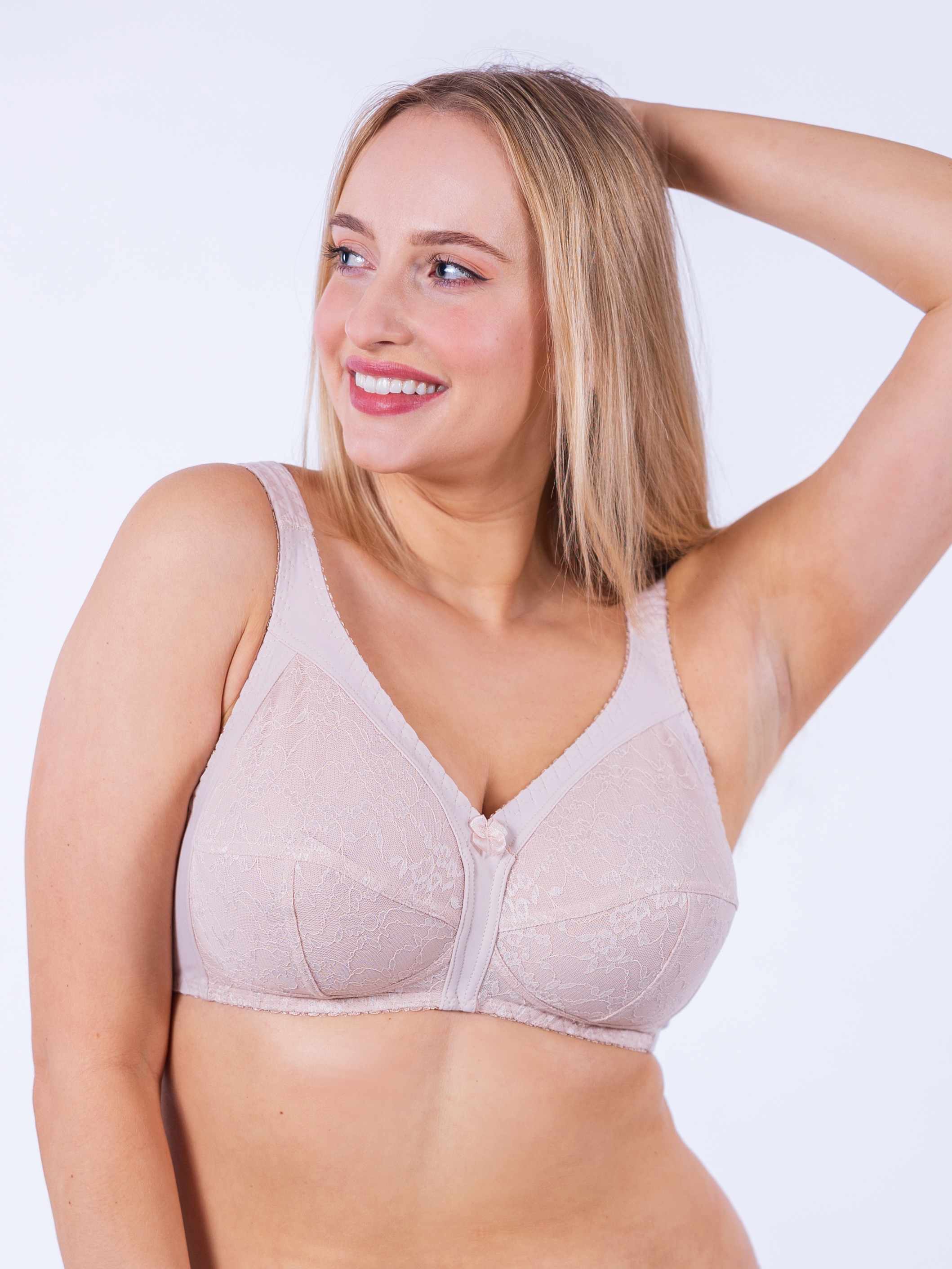 Klasická skvěle padnoucí podprsenka Vladěna, navržená podle vzoru podprsenky Akácie, oblíbené již řadu let. Celá vnitřní strana košíčků je pro větší pohodlí podšitá bavlnou a pro zpevnění jsou na bocích podprsenky kostice. Podprsenka je vylepšená o široká vyztužená ramínka, které ocení především ženy s větším poprsím. Ramínka jsou délkově stavitelná, s posunovači v zadní části. Zapínání na dvojháček, u větších velikostí na trojháček. Změna dezénu vyhrazena